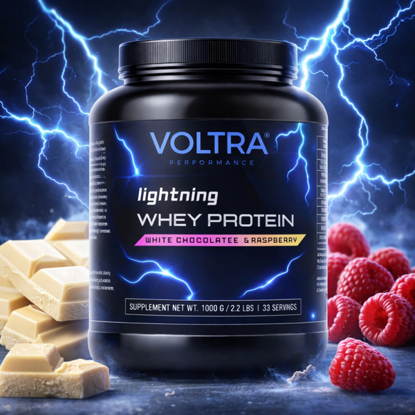 Voltra Performance Lightning Whey Protein White Chocolate & Raspberry is een hoogwaardige whey protein concentrate die speciaal is ontwikkeld ter ondersteuning van spierherstel en spieropbouw. Dankzij de snelle opname is deze eiwitshake ideaal voor gebruik na de training of als aanvulling op je dagelijkse eiwitinname.