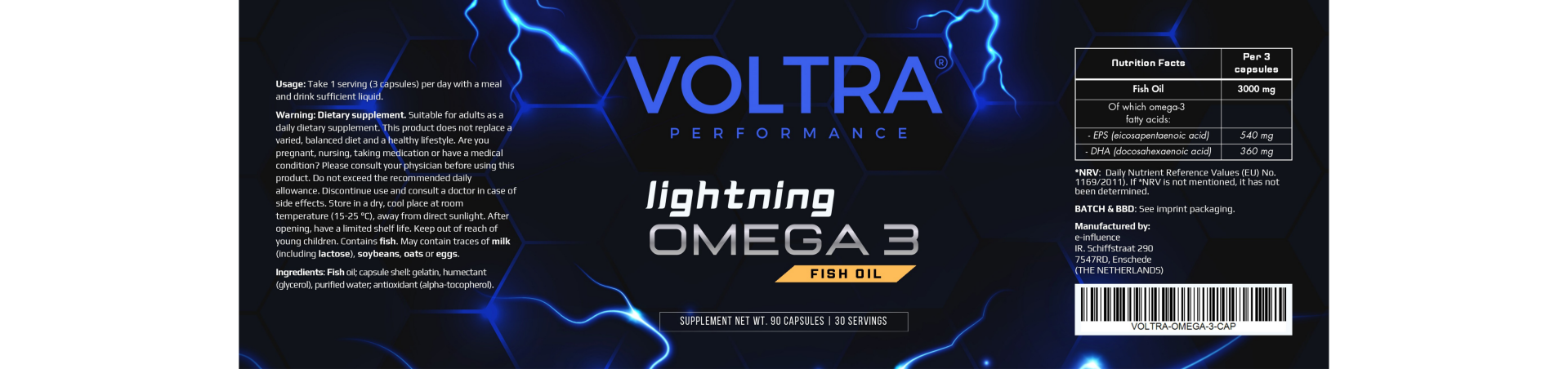 Voltra Performance Lightning Omega 3 Fish Oil is een hoogwaardige visolie-supplement, ontwikkeld ter ondersteuning van de algehele gezondheid en prestaties. Deze formule bevat een hoge dosering omega 3-vetzuren, waaronder EPA en DHA, die essentieel zijn voor het lichaam.